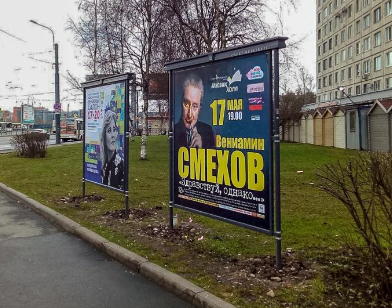 Фотография рекламного носителя, тип: Афиша 1.75x1.8, адрес: Большевиков пр-т., д.19 Х Дыбенко ул., установка 2, Санкт-Петербург, Россия. Сторона A №1099930