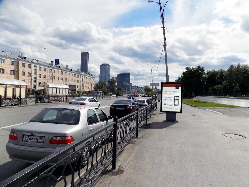 - Описание рекламной конструкции: Двухсторонняя динамическая конструкция. Установлена в северной части города, на крупной транспортной магистрали - улице Челюскинцев, которая соединяет центр города с Железнодорожным районом. Здесь очень активный транспортный поток, в том числе общественного транспорта (трамваи, автобусы, маршрутные такси). В непосредственной близости от конструкции находится Уральский государственный университет путей сообщения, Управление Свердловской железной дороги, ряд магазинов и кафе. Неподалеку расположены: станция метро "Динамо", Дворец игровых видов спорта (ДИВС), чьим основным видом деятельности является проведение международных спортивных соревнований, культурно-зрелищных мероприятий. Так же рядом расположена набережная реки Исеть - "Плотинка", традиционное место массовых народных гуляний и праздников.