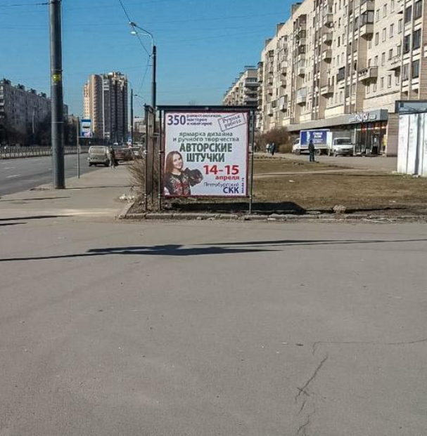 Фотография рекламного носителя, тип: Афиша 1.75x1.8, адрес: Димитрова ул., д.16, корп.1 Х Будапештская ул., установка 1, Санкт-Петербург, Россия. Сторона A №1100082
