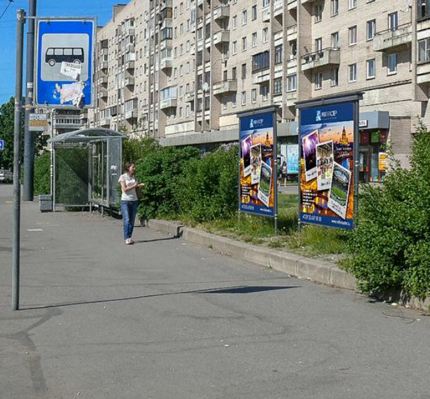 Фотография рекламного носителя, тип: Афиша 1.75x1.8, адрес: Димитрова ул., д.16, корп. 1, установка 2, Санкт-Петербург, Россия. Сторона A №1100085