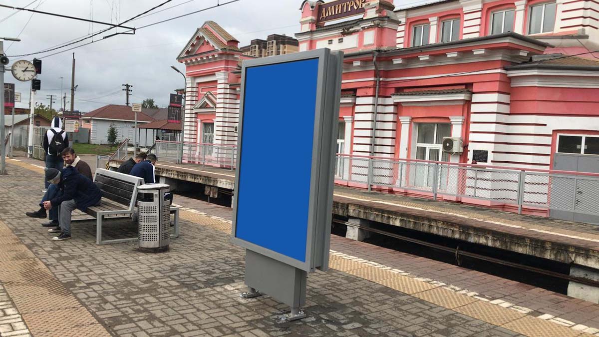 Ситиформат 1.8x1.2, Дмитров ст., на платформе на Москву, напротив здания вокзала, Московская область