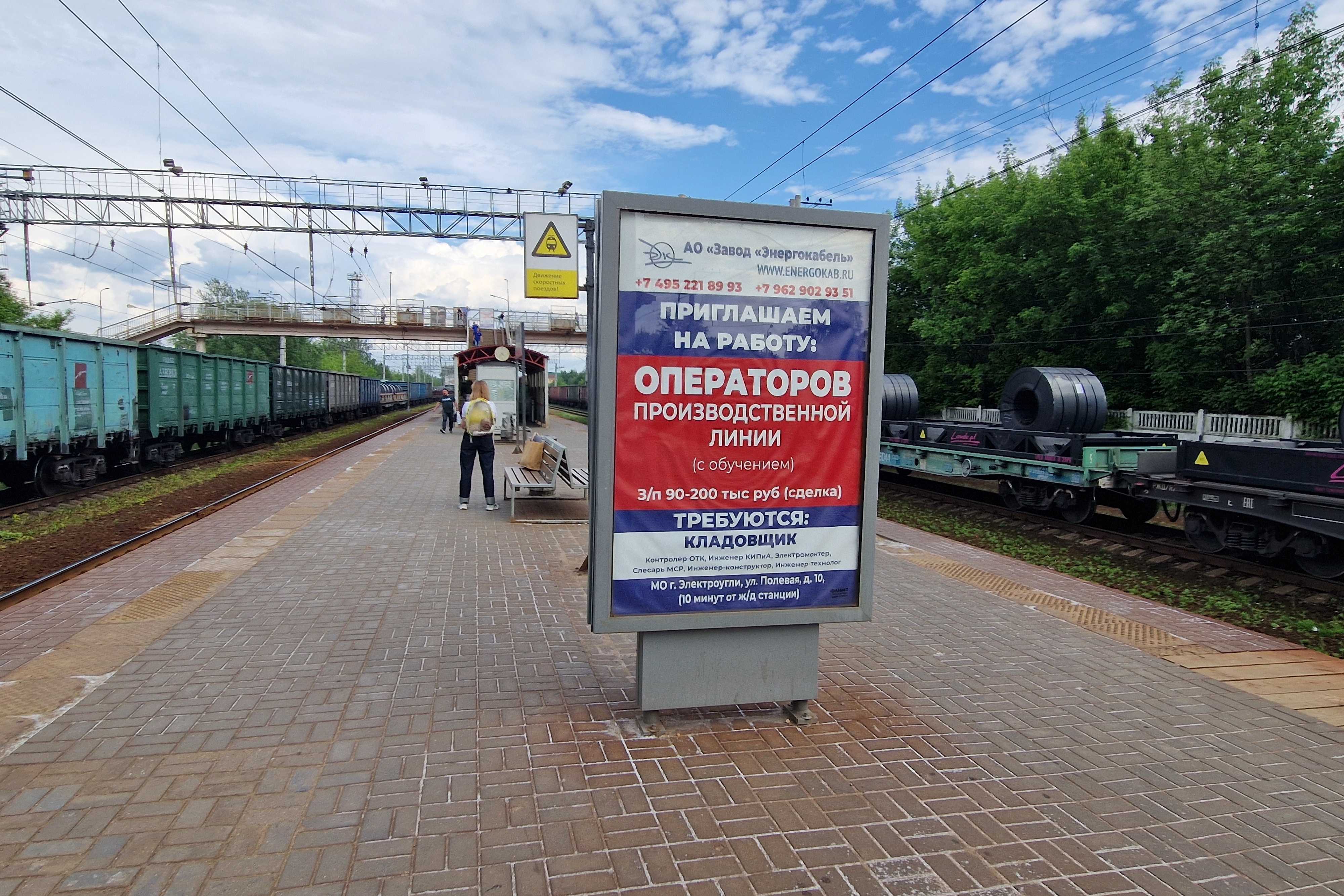 Реклама на ситиформате 1.8x1.2, Электроугли ст., островная платформа, между турникетным павильоном и навесом, Московская область
