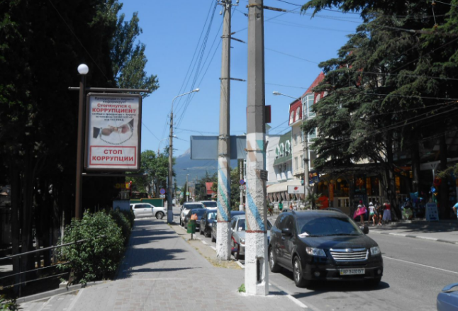 - Описание рекламной конструкции: 1.8x1.2. В непосредственной близости Алуштинский аквариум, дельфинарии, парк-отель Прага, гостиница Агора, отель Редиссон, санаторий Крымские зори.