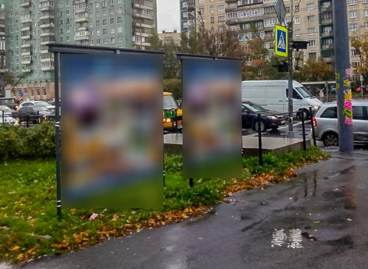 Фотография рекламного носителя, тип: Афиша 1.75x1.8, адрес: Индустриальный пр-т., д.32 Х Ударников пр-т., установка 1, Санкт-Петербург, Россия. Сторона A №1100160