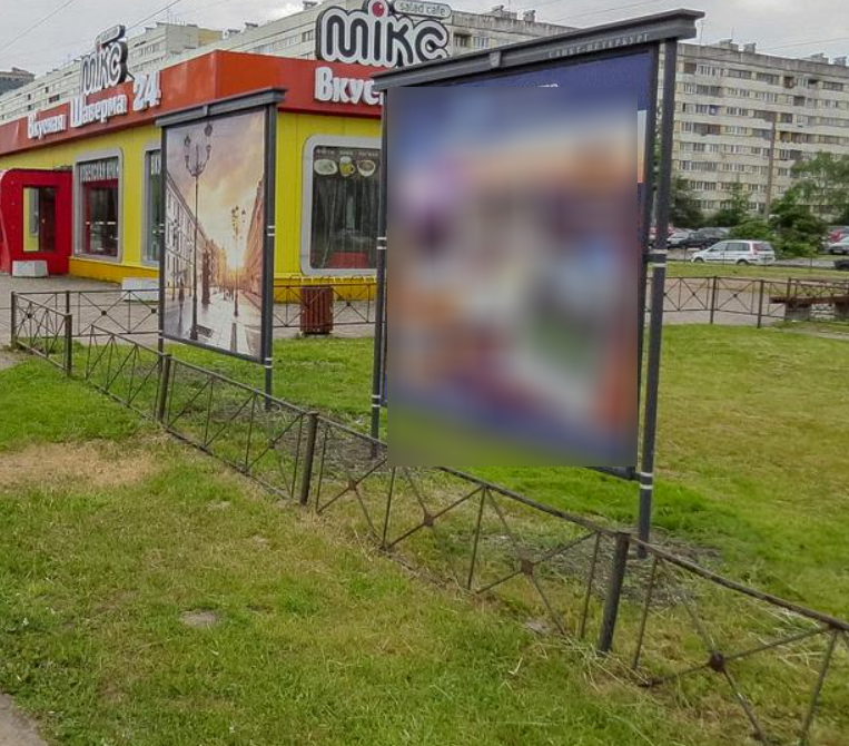Фотография рекламного носителя, тип: Афиша 1.75x1.8, адрес: Испытателей пр-т., д.13, установка 1, Санкт-Петербург, Россия. Сторона A №1100180