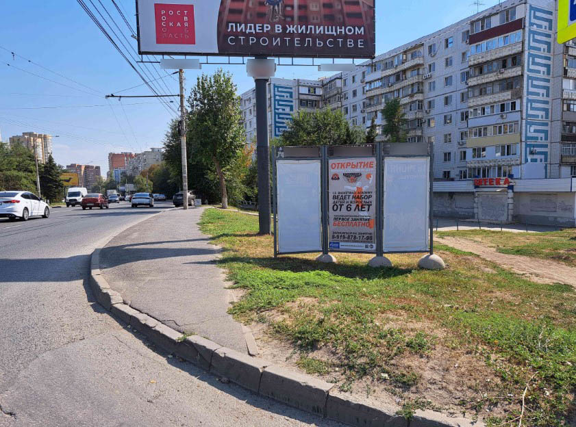 Фотография рекламного носителя, тип: Афиша 1.75x1.8, адрес: Комарова б-р., д.5 X Добровольского ул., Ростов-на-Дону, Ростовская область, Россия. Сторона А №1340664