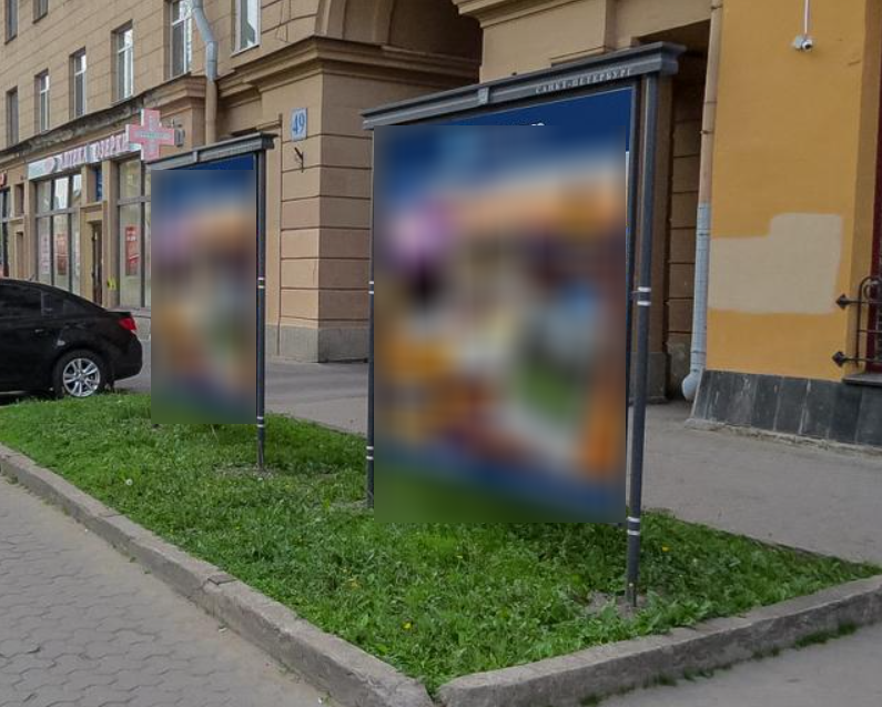 Фотография рекламного носителя, тип: Афиша 1.75x1.8, адрес: Кондратьевский пр-т., д.49, установка 2, Санкт-Петербург, Россия. Сторона A №1100249