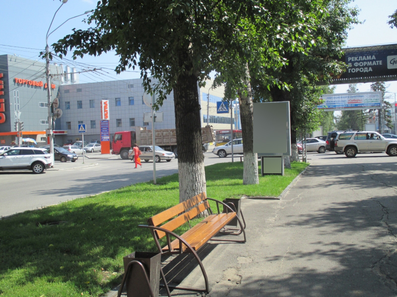 - Описание рекламной конструкции: Расположен на пересечении проспекта Ленина и улицы Гоголя, непосредственно в сквере, рядом с остановочным пунктом и пешеходным переходом, в 15 метрах расположен Дворец Бракосочетаний!