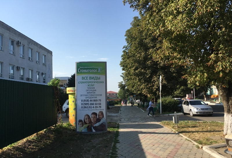 Фотография рекламного носителя, тип: Пилон, адрес: Ленина ул., Детская поликлиника, Усть-Лабинск, Краснодарский край, Россия. Сторона Б №1021311