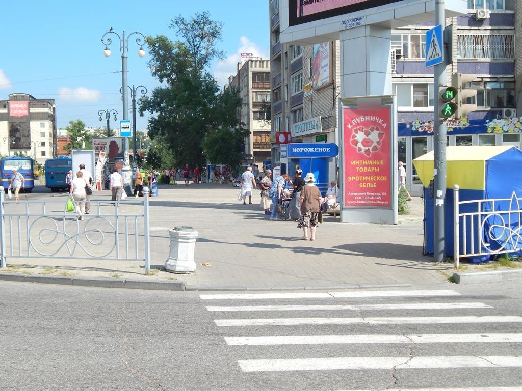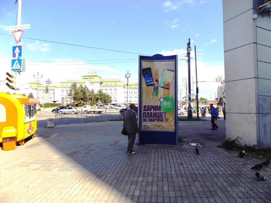 - Описание рекламной конструкции: Рекламная конструкция расположена на оживленной магистрали, пересекающую одну из центральных площадей города - Привокзальную. Крупными форматами на данной площади являются сити форматы и пиллары. В непосредственной близости от конструкции находится сеть продовольственных и промтоварных магазинов, крупный торговый центр, отделение сбербанка, аптека, парикмахерская, проходят маршруты общественного и городского транспорта (автобусы 1Л, 4,5,12,13,20,22,26,28,34,35,42,54,57Т).
