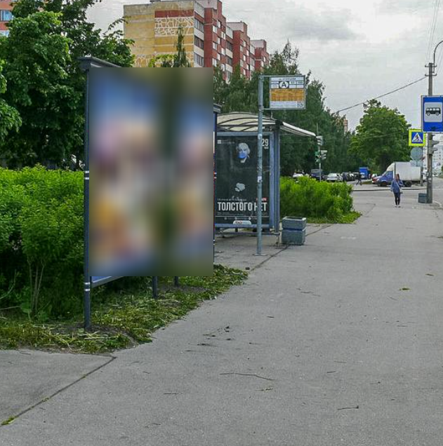 Фотография рекламного носителя, тип: Афиша 1.75x1.8, адрес: Маршала Захарова ул., пр. Кузнецова, д.22, корп. 1, установка 1, Санкт-Петербург, Россия. Сторона A №1100500