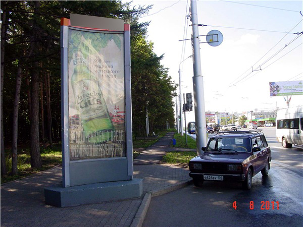 - Описание рекламной конструкции: ост. ТЦ «Башкортостан». Рядом расположены:торговый центр, электронный супермаркет «Форте», авто-магазин, ипподром «Акбузат», за пилларсом находится лесной массив, трамплин, спортивно-развлекательный комплекс «Олимпик парк», кафе ""108 чайников"", Лидо."