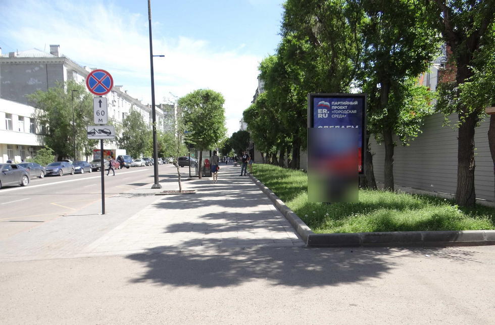 - Описание рекламной конструкции: Конструкция расположена на главной улице города - на проспекте Мира, с оживленным движением автотранспорта и пешеходов. На всей протяженности проспекта сосредоточена масса административных и коммерческих предприятий. Рядом находятся магазины «Снежный барс», «Bally», медицинский центр «Чистый берег».