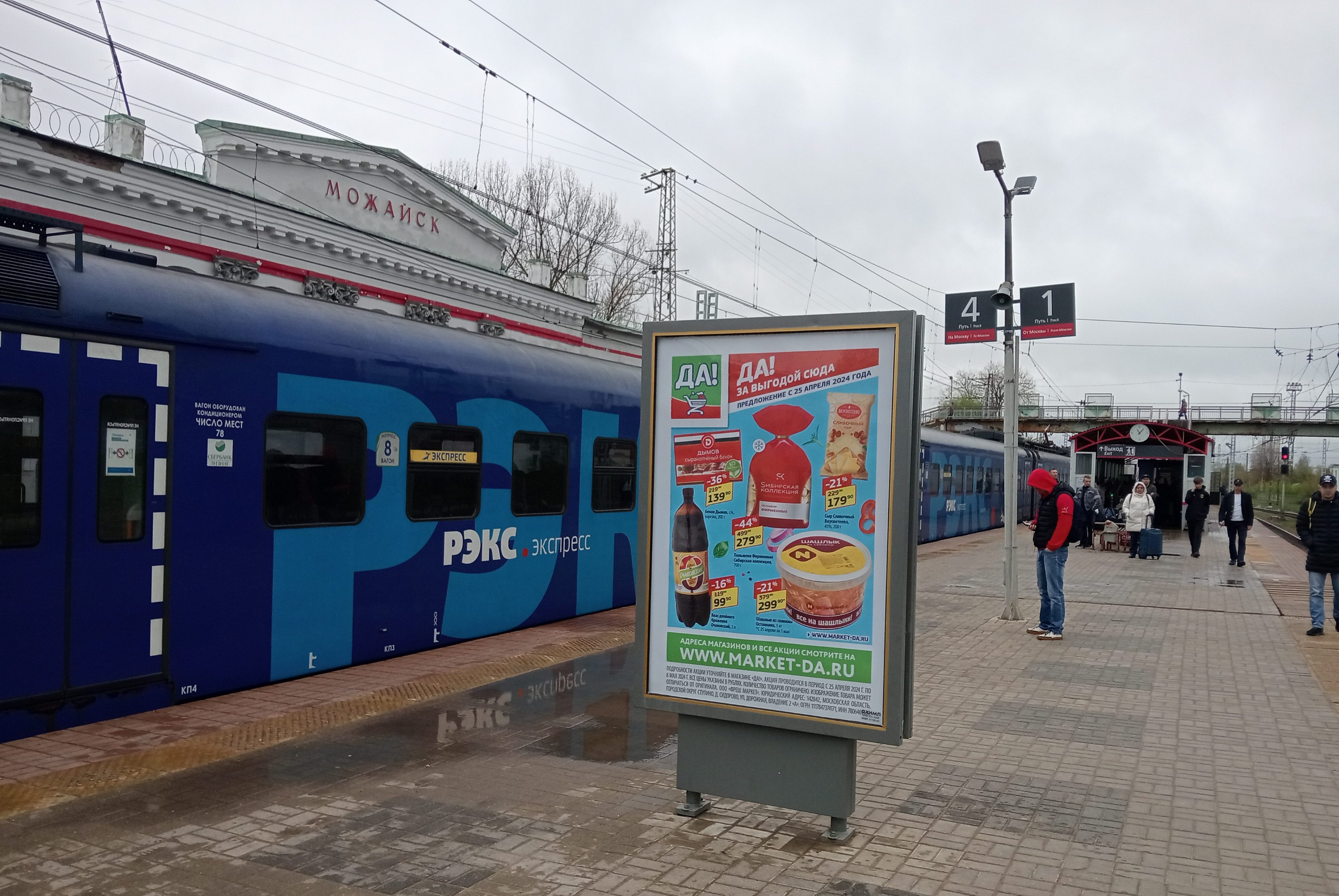 Реклама на ситиформате 1.8x1.2, Можайск ст., островная платформа, в середине платформы, Московская область