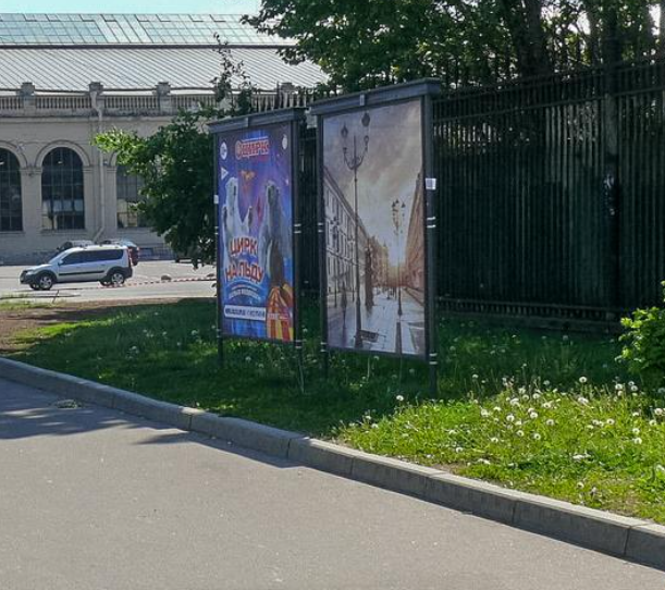 Фотография рекламного носителя, тип: Афиша 1.75x1.8, адрес: наб. Обводного кан., д.118, корп. 8, ТРК "Варшавский экспресс", установка 4, Санкт-Петербург, Россия. Сторона A №1101252