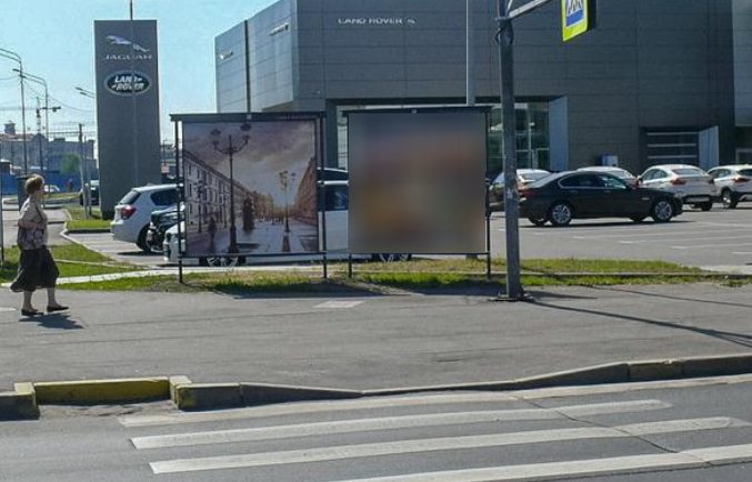 Фотография рекламного носителя, тип: Афиша 1.75x1.8, адрес: наб. Обводного кан., д.72 Х Рыбинская ул., автосалон "БМВ", установка 2, Санкт-Петербург, Россия. Сторона A №1101266