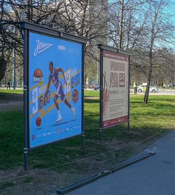 Фотография рекламного носителя, тип: Афиша 1.75x1.8, адрес: Наличная ул., д.28 Х Нахимова ул., Горный университет, установка 2, Санкт-Петербург, Россия. Сторона A №1100587