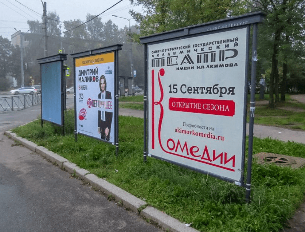 Фотография рекламного носителя, тип: Афиша 1.75x1.8, адрес: Народная ул., д.33 Х Дальневосточный пр., установка 1, Санкт-Петербург, Россия. Сторона A №1100608