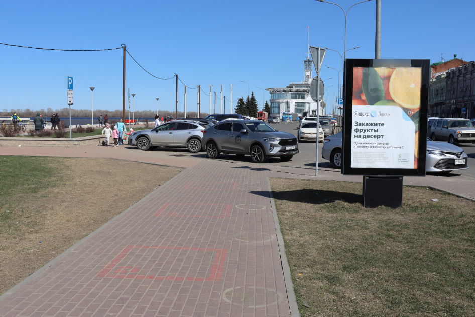 - Комментарий к адресу: Конструкция расположена на одной из главных пешеходных зон города - Нижне-Волжской набережной, повышенный людской трафик в вечернее время, выходные и праздничные дни, рядом большое количество увеселительных заведений.