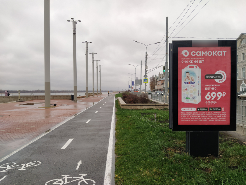 - Комментарий к адресу: Конструкция расположена на одной из главных пешеходных зон города - Нижне-Волжской набережной, повышенный людской трафик в вечернее время, выходные и праздничные дни, рядом большое количество увеселительных заведений.