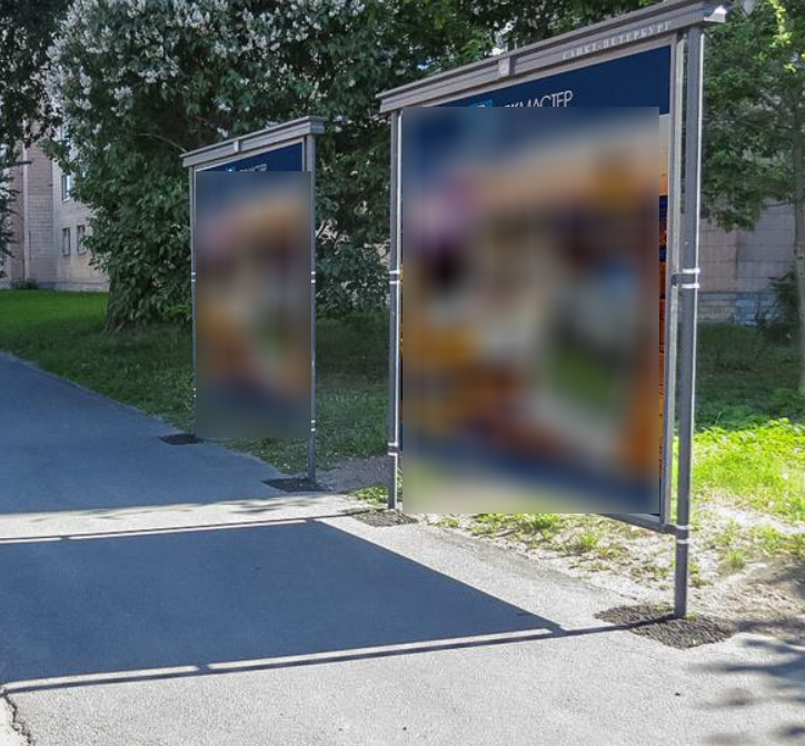 Фотография рекламного носителя, тип: Афиша 1.75x1.8, адрес: Новочеркасский пр., д.10, корп. 1, Весенний сквер, установка 1, Санкт-Петербург, Россия. Сторона A №1100716