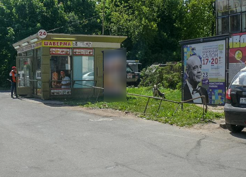 Фотография рекламного носителя, тип: Афиша 1.75x1.8, адрес: Новоизмайловский пр., д.13, корп.2 Х Бассейная ул., "Семишагоф", установка 1, Санкт-Петербург, Россия. Сторона A №1100686