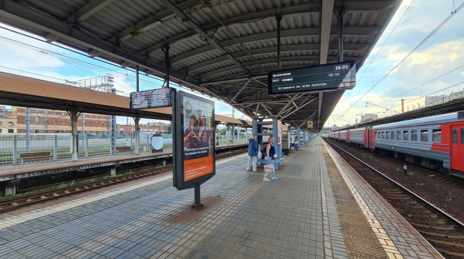 Фотография рекламного носителя, тип: Ситиформат 1.8x1.2, адрес: Новоподрезково ст., платформа из Москвы, Москва, Россия. Сторона А №1327087