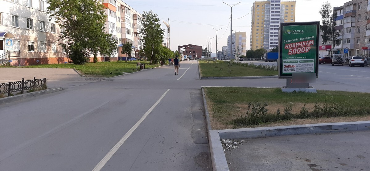- Описание рекламной конструкции: Сити-формат расположен на одной из главных улиц города – ул.Победы. В шаговой доступности от конструкции находится Дом быта, а также банк, Почта России и остановки, ездит городской транспорт. Конструкция хорошо просматривается как пешеходами, так и пассажирами и водителями из транспорта