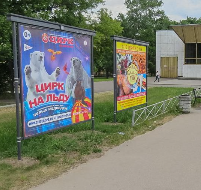 Фотография рекламного носителя, тип: Афиша 1.75x1.8, адрес: Политехническая ул., д.29А, ст.м. Политехническая, установка 4, Санкт-Петербург, Россия. Сторона A №1100825