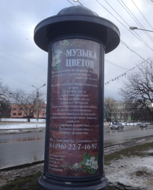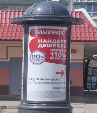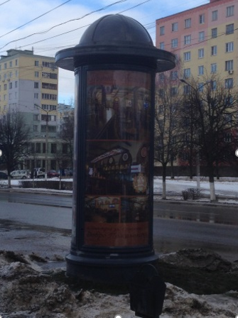 - Описание рекламной конструкции: круглая информационная тумба с тремя рекламными модулями размером 1380 х 2890 мм