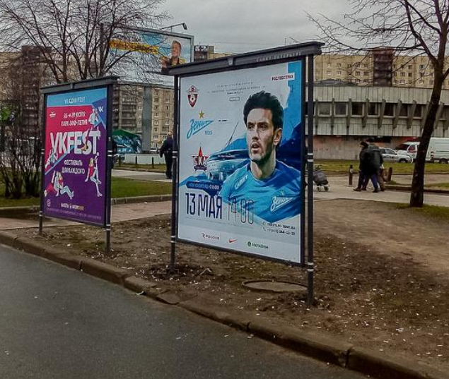 Фотография рекламного носителя, тип: Афиша 1.75x1.8, адрес: Пятилеток пр., д.1, напротив, Ледовый дворец, ст.м. пр. Большевиков, установка 3, Санкт-Петербург, Россия. Сторона A №1100888