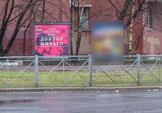 Фотография рекламного носителя, тип: Афиша 1.75x1.8, адрес: Шлиссельбургский пр., д.16, Дмитрия Устинова ул., установка 2, Санкт-Петербург, Россия. Сторона A №1101143