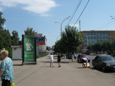 - Описание рекламной конструкции: Пиллар расположен на пересечении центральной улицы города – Советской – и Первомайской площади, в южной части города. Плотно населенный жилой сектор. Рядом расположены автобусная остановка, магазины, салоны красоты, кафе, медицинские центры.