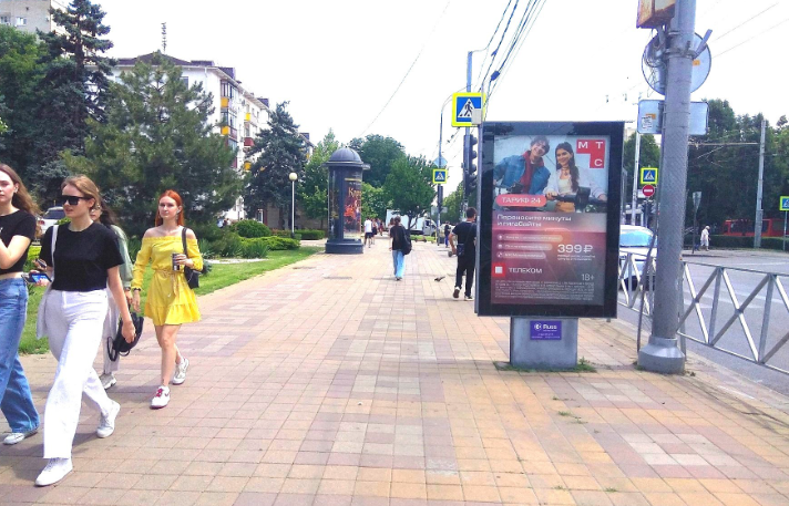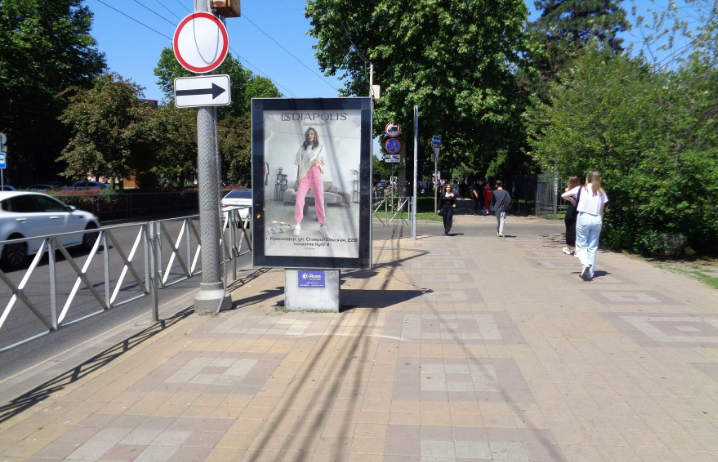 - Описание рекламной конструкции: Двусторонняя статичная конструкция, расположена на пересечении ул. Ставропольская и ул. Айвазовского. В непосредственной близости от конструкции находится сеть магазинов "Табрис", Кубанский Государственный Университет, магазины, остановки общественного транспорта.