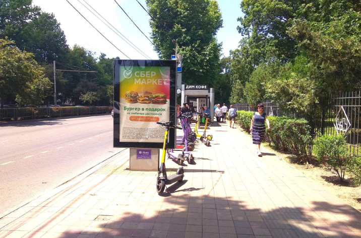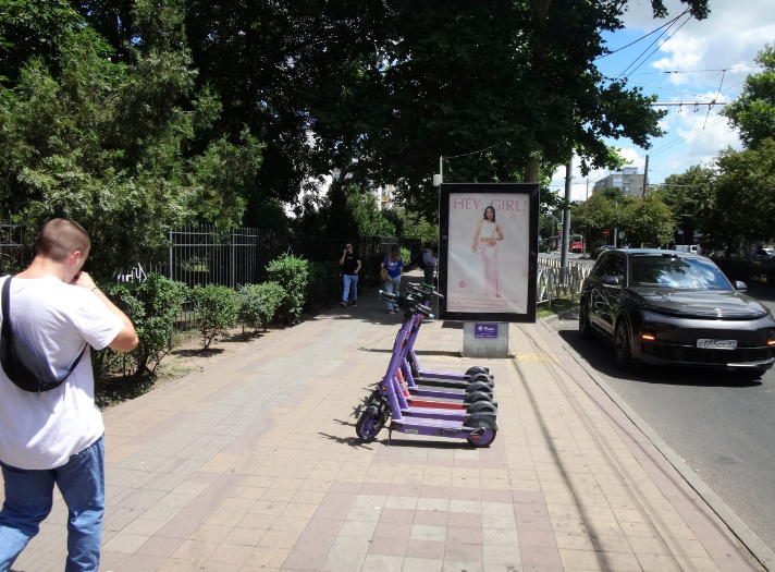 - Описание рекламной конструкции: Двусторонняя статичная конструкция, расположена на пересечении ул. Ставропольская и ул. Айвазовского. В непосредственной близости от конструкции находится сеть магазинов "Табрис", Кубанский Государственный Университет, магазины, остановки общественного транспорта.