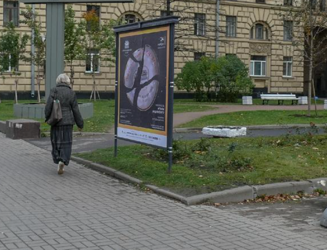 Фотография рекламного носителя, тип: Афиша 1.75x1.8, адрес: Суворовский пр., д.61, установка 3, Санкт-Петербург, Россия. Сторона A №1101067