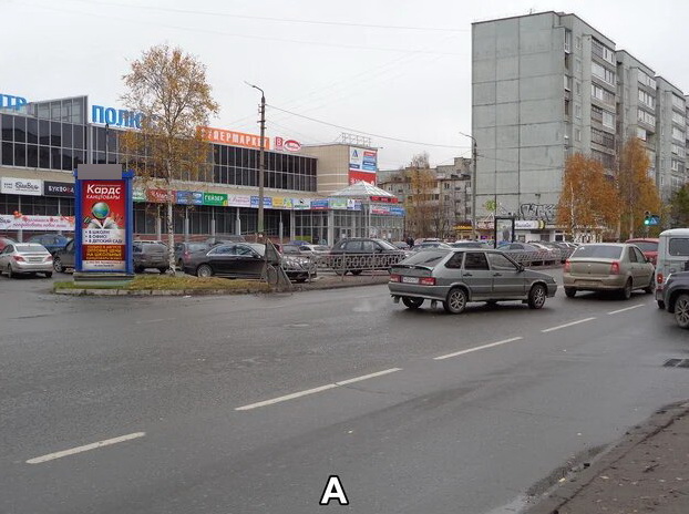 Фотография рекламного носителя, тип: Пиллар 3x1.4, адрес: Тимме ул., ТЦ Полюс, Архангельск, Архангельская область, Россия. Сторона АВС №819762