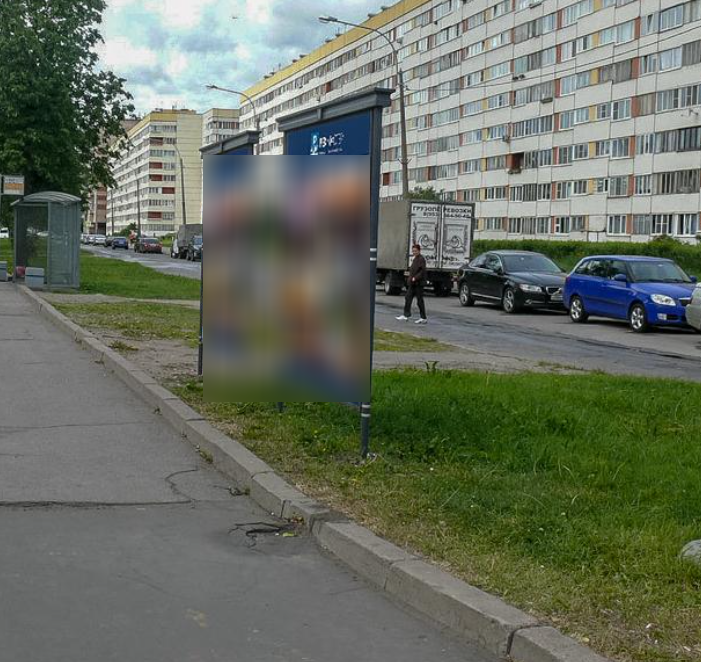 Фотография рекламного носителя, тип: Афиша 1.75x1.8, адрес: Ветеранов пр-т., д.1, корп. 1 Х Подводника Кузьмина ул., установка 1, Санкт-Петербург, Россия. Сторона A №1100018