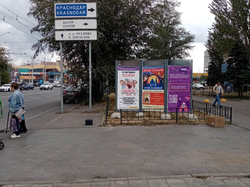 Фотография рекламного носителя, тип: Афиша 1.75x1.8, адрес: Волкова ул., д.12, Ростов-на-Дону, Ростовская область, Россия. Сторона А №1340621