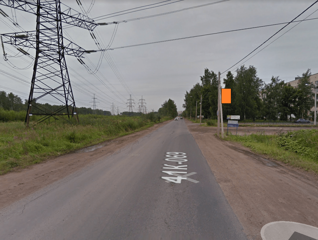 Фотография рекламного носителя, тип: Панель-кронштейн, адрес: Заневка д., 1-я опора перед д.48А, Ленинградская область, Россия. Сторона ПС №812295