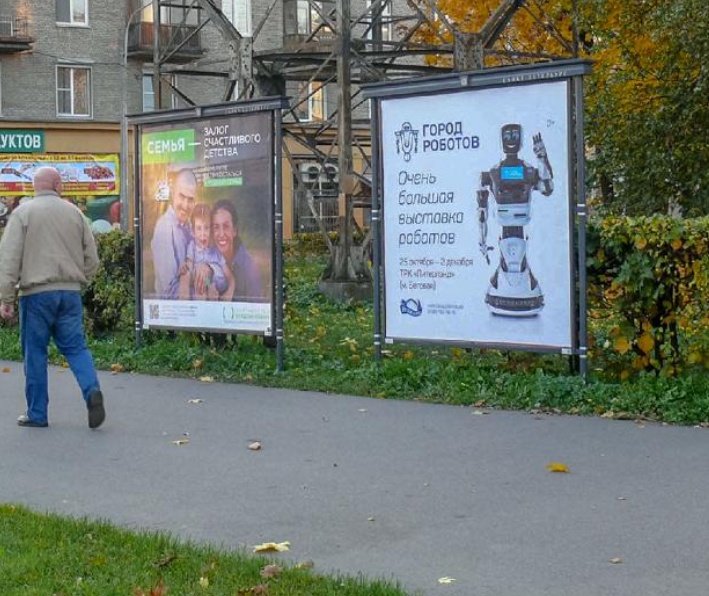 Фотография рекламного носителя, тип: Афиша 1.75x1.8, адрес: Зайцева ул.., чётная сторона, ул. Новостроек, бульвар, установка 2, Санкт-Петербург, Россия. Сторона A №1100117