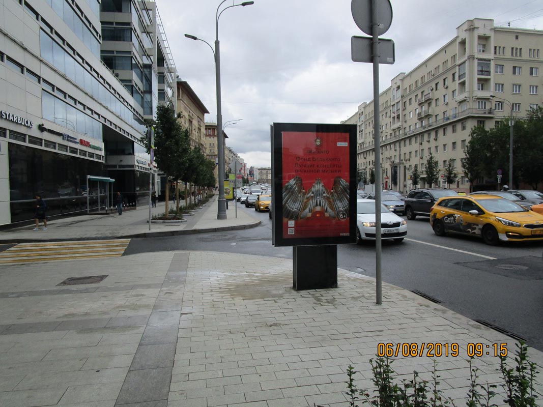- Описание рекламной конструкции: Рядом находятся ремонт электро-бытовой техники, фотоофис, Банк Расчетов и Сбережений, супермаркет "Перекресток", БургХаус, кофейня "Старбакс", школа иностранных языков "Алибра", кафе "Аддис Абеба", Райффайзен Банк, кухонная студия "Мария"