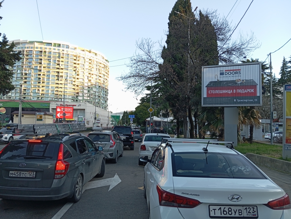 Фотография рекламного носителя, тип: Ситиборд 2.7x3.7, адрес: Горького ул., д.57, Сочи, Краснодарский край, Россия. Сторона А1-А3 №741944
