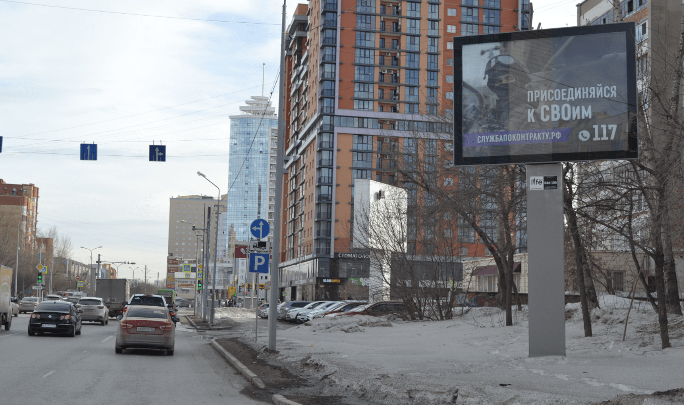 Фотография рекламного носителя, тип: Ситиборд 2.7x3.7, адрес: Осипенко ул., д.84, поз.2, Тюмень, Тюменская область, Россия. Сторона A1-A5 №1023763