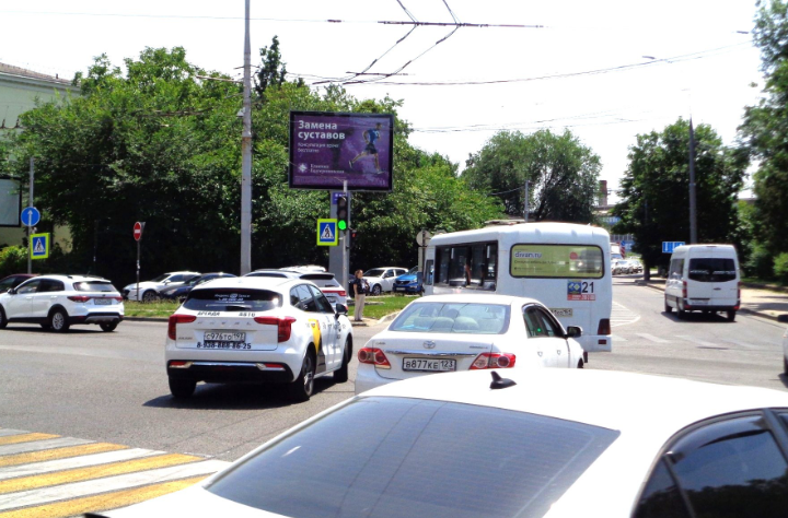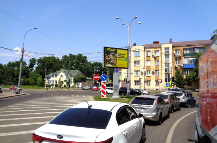 - Описание рекламной конструкции: Двустороняя динамическая освещенная конструкция, расположена на пересечении ул. Седина и ул. Постовая. В непосредственной близости от рекламной конструкции находятся городской парк имени Горького, Кубанская Государственная Медицинская Академия, остановки общественного транспорта.
