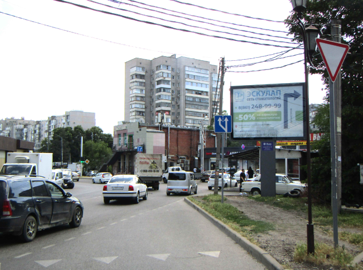 - Описание рекламной конструкции: Двусторнняя статичная конструкция, расположена на улице Тюляева. Рядом с РК находятся: сеть пиццерий "Луна-Пицца", торговые павильоны, универсальный рынок "Русь", стоматологическая клиника, сеть продовольственных магазинов "Агрокомплекс", центр красоты и здоровья "Астра-фит".