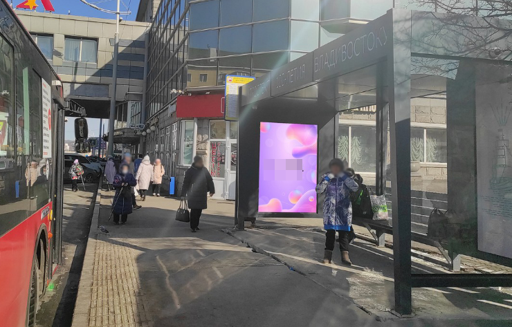 Фотография рекламного носителя, тип: Остановка 1.8x1.2, адрес: 100-лет Вл-ку пр-т., д.42А, Владивосток, Приморский край, Россия. Сторона A №1005771