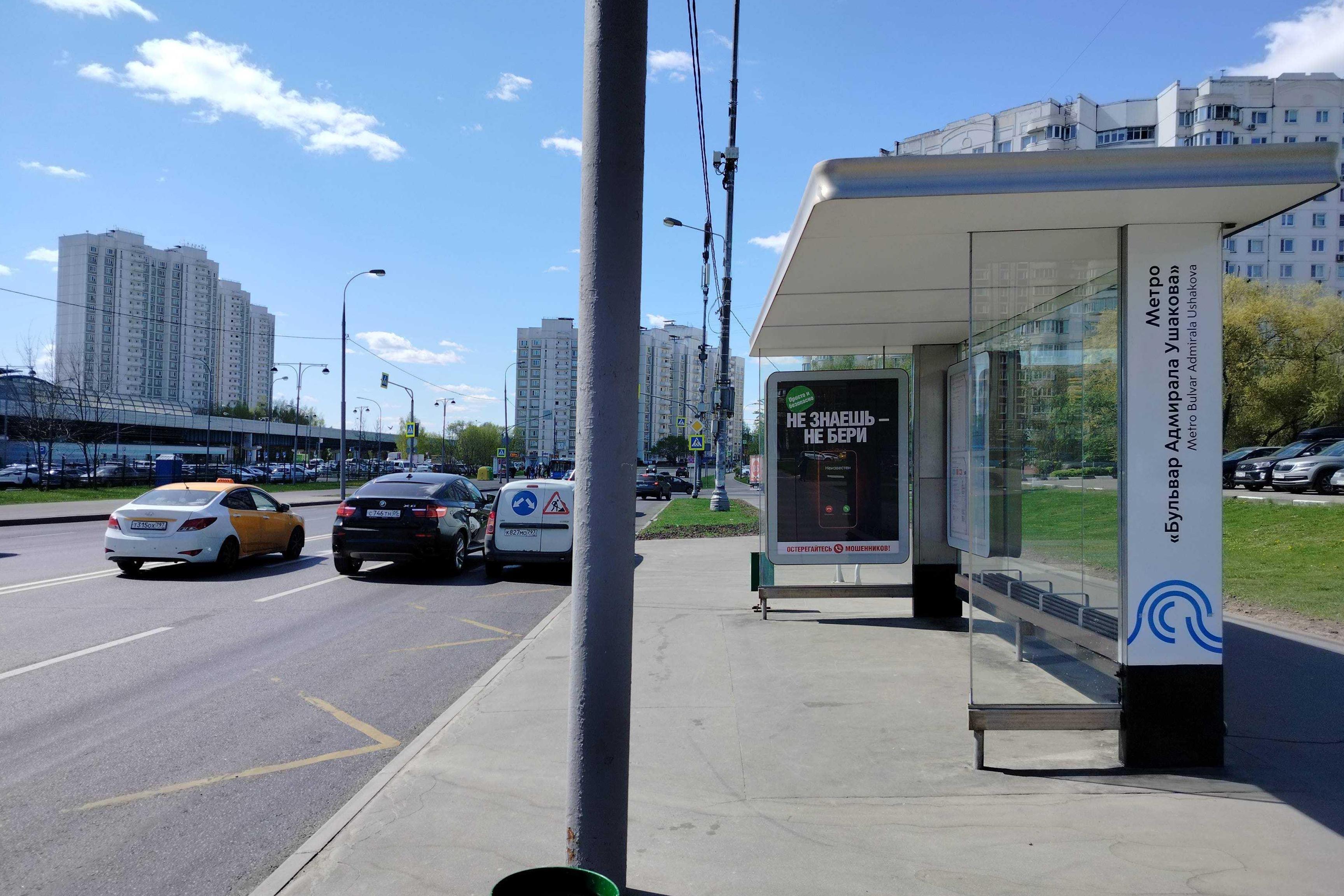 Остановка 1.8x1.2, Адмирала Лазарева ул. 2 / ост. "Метро "Бульвар Адмирала Ушакова" из центра, Москва