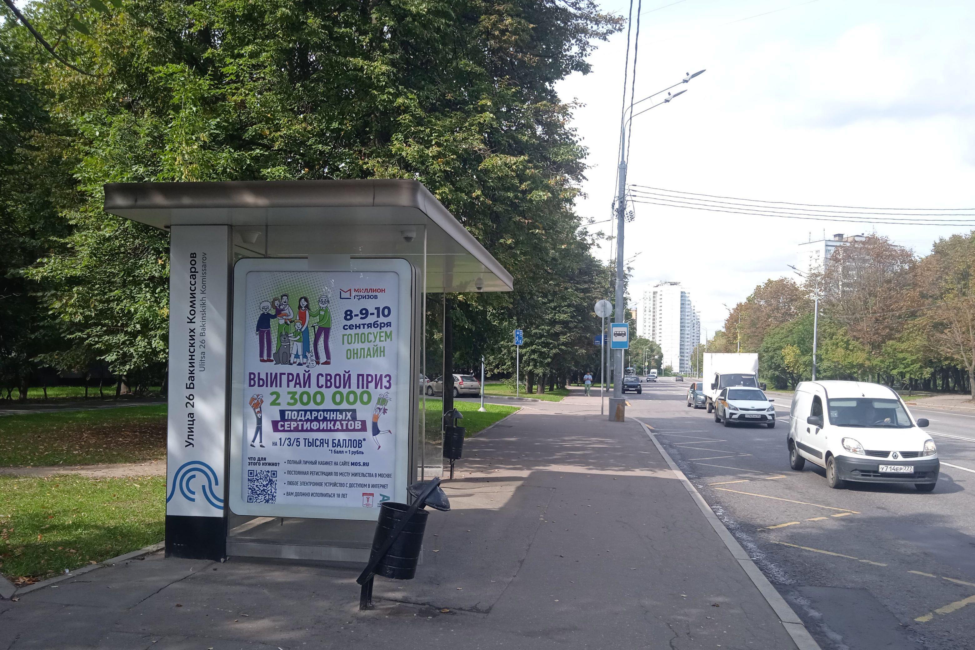 Остановка 1.8x1.2, Бакинских Комиссаров 26-ти ул., ост. "26-ти Бакинских Комиссаров ул.", Москва