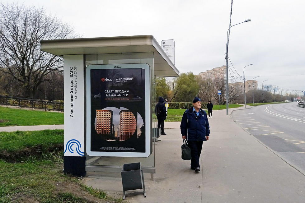Остановка 1.8x1.2, Боровское ш., ост. "Солнцевский отдел ЗАГС", в центр, Москва